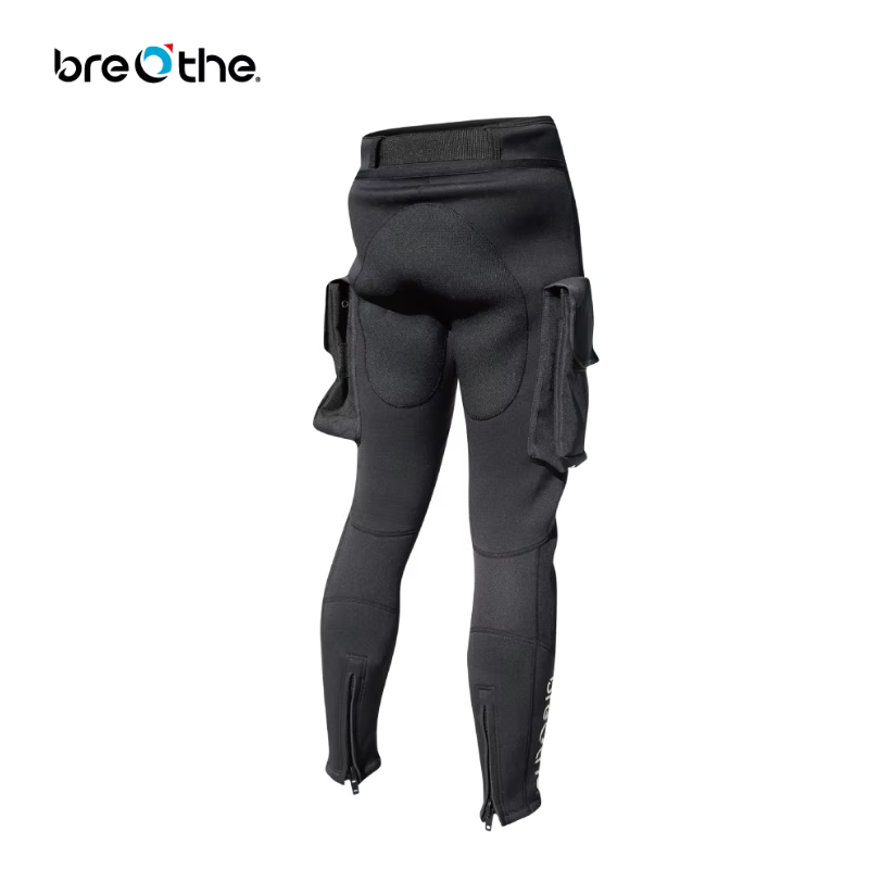 Breathe 26-P-PT-BK Pants 耐磨防寒口袋長褲採用 3mm 厚度 Neoprene(氯丁橡膠/尼龍)材質製成,保暖度適中。雙腳踝處設有拉鍊,提升穿脫便利性,褲檔處配置拉鍊設計方便穿脫與如廁使用。褲子兩側設有兩個口袋,提供額外收納空間。膝蓋位置加入耐磨材質強化設計,以強化使用壽命與效能。