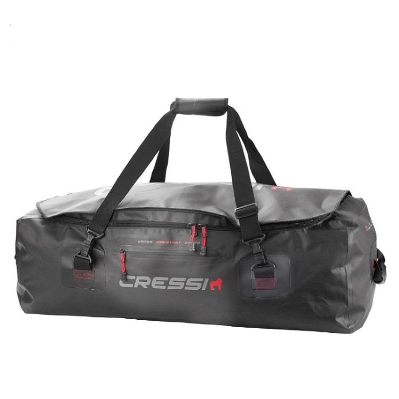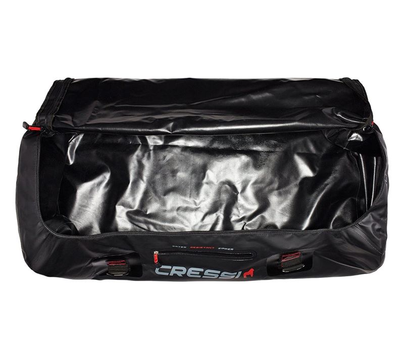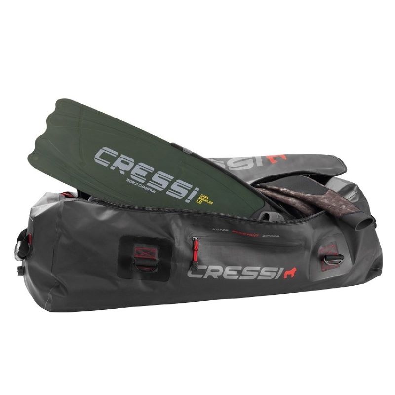 CRESSI GORILLA PRO A large and roomy bag, plenty of space for storage. Internal capacity of 135 liters | 4.75 cu ft.The bag is long enough to hold even the long freediving fins. It is made from a strong radio frequency (RF) welded seam PVC and is waterproof.Equipment can be washed with water while still inside the bag. No water comes out when transported, even by car.Once you have finished washing your gear the bag has a special draining cap situated at one end to let water out easily and conveniently.Comes with handy top grab carry handles and two straps that can also be used as shoulder straps.