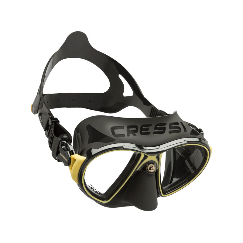 CRESSI Zeus 專利防起霧系列,在鼻子周圍有特殊橡膠密合,在補償壓力或配戴時能夠避免起霧,同時還有穩定面鏡的功能,無論在什麼深度的水域當中,都能保持面鏡配戴時的穩定度