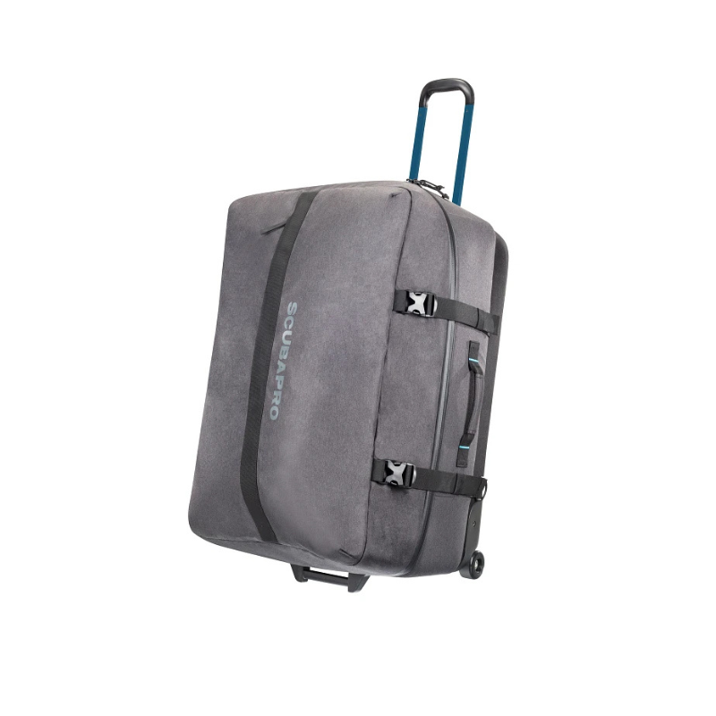 採用全新再生雙色灰布料製成,並以藍色加強縫線提升結構強度與耐用度,整體做工扎實,是能陪伴潛水員前往世界各地探險的高品質旅行裝備袋。