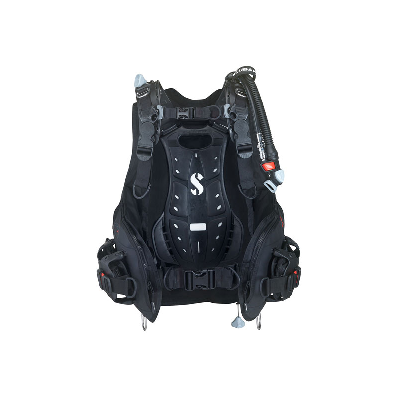 The air cell and harness are modular and detachable. The bladder, made out of EndurTex high-tenacity nylon fabric, is extremely lightweight and durable while offering generous lift capacity, aided by lower back bellows. In the event of damage, every component on the Hydros X is detachable and easily replaceable. Its flat-buckled quick-release integrated weight system and rear trim weight pockets work together to offer a more comfortable and balanced ride when cruising the depths.